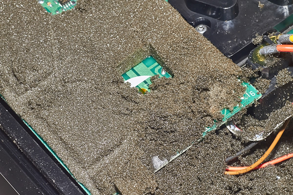 foam has been pressed against the PCB, the SMD components, resistors, and